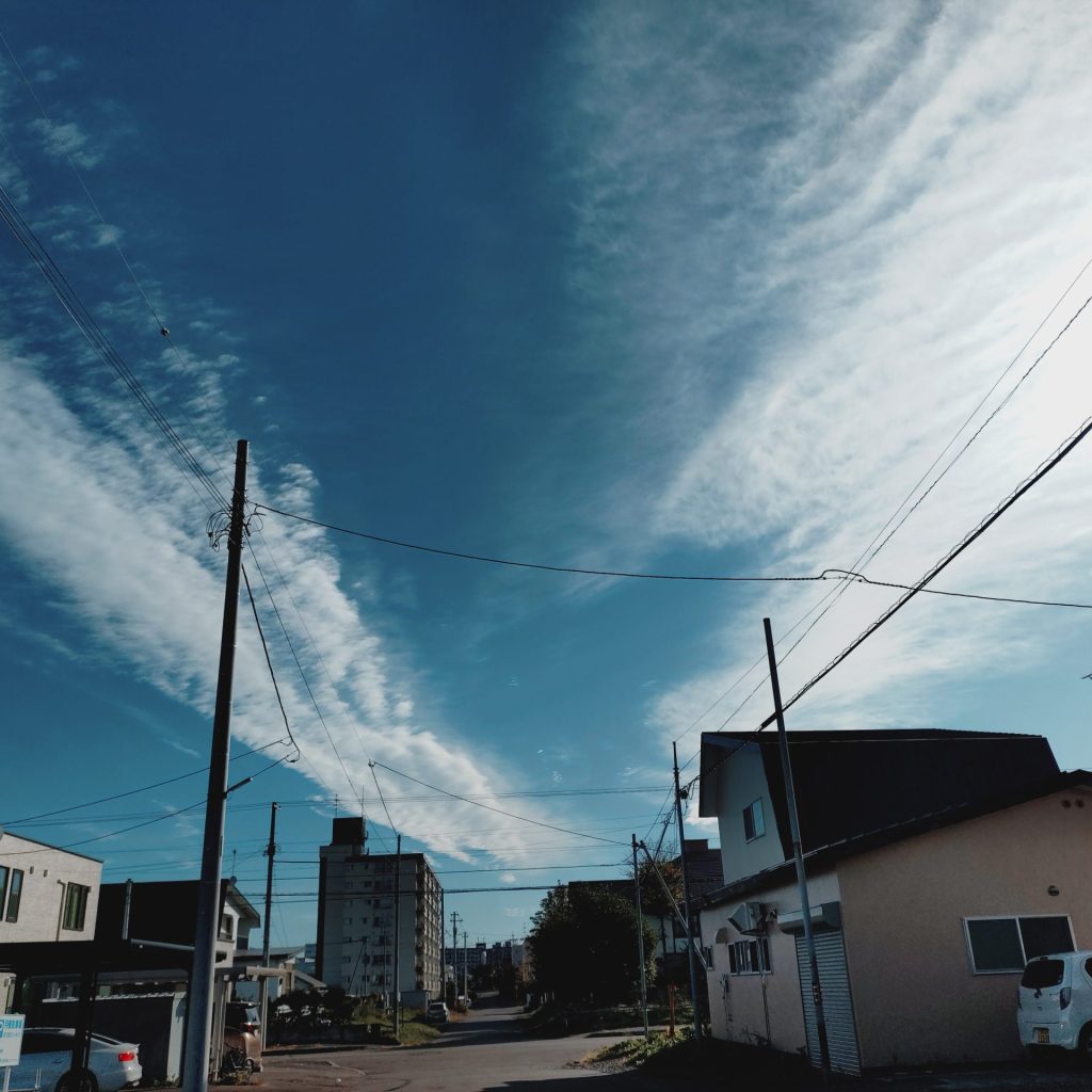今日の空です 西から東にかけて一直線に雲が日本かかっていました