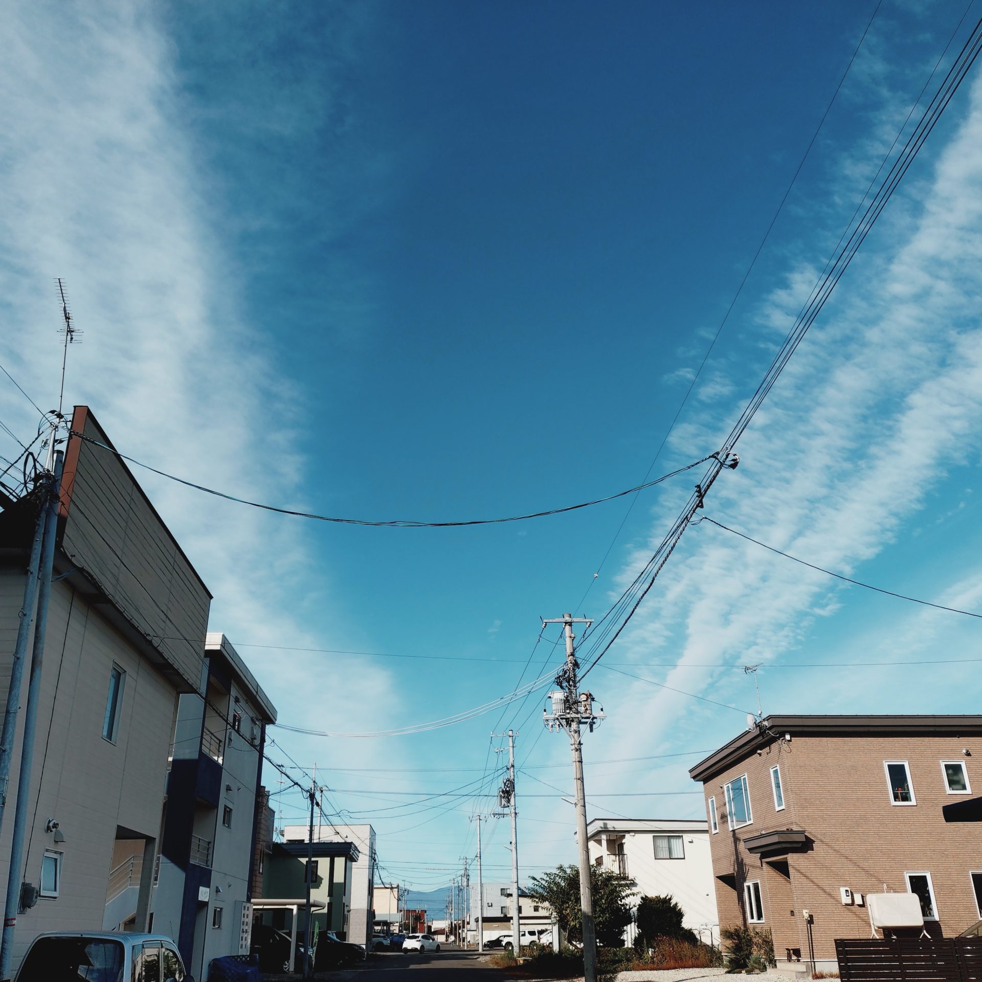 今日の空です 西から東にかけて一直線に雲が日本かかっていました