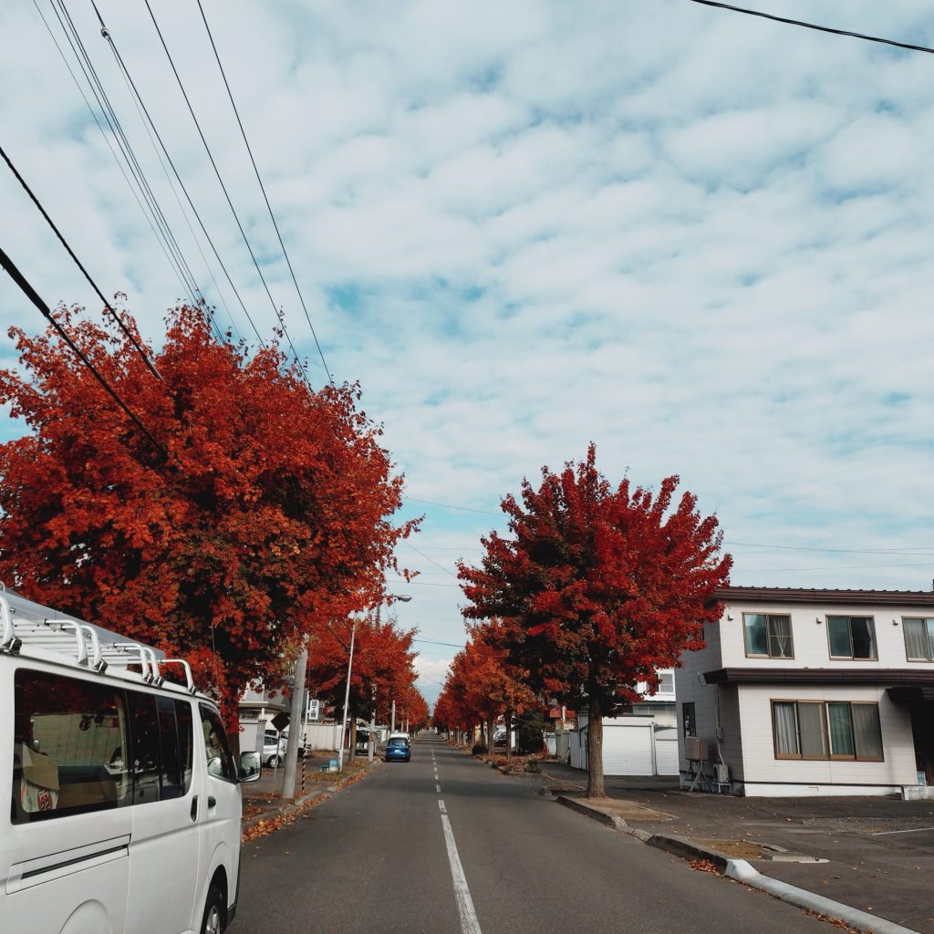 工事現場の街路樹です 楓です イチョウ並木もきれいです