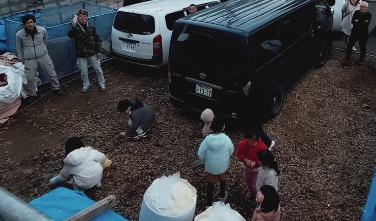 子供たちが紅白のお餅を拾っています 良い思い出になりますね (⋈◍>◡<◍)。✧♡