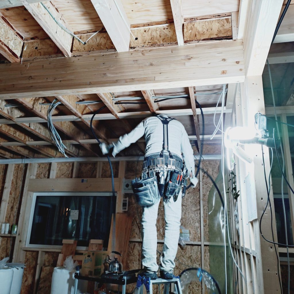 内部電気配線工事中です 2日後に外壁の断熱工事になります