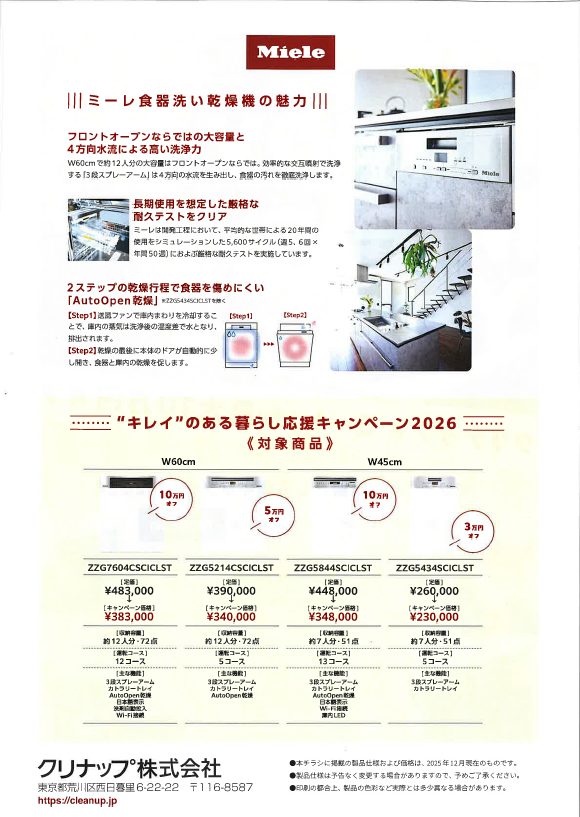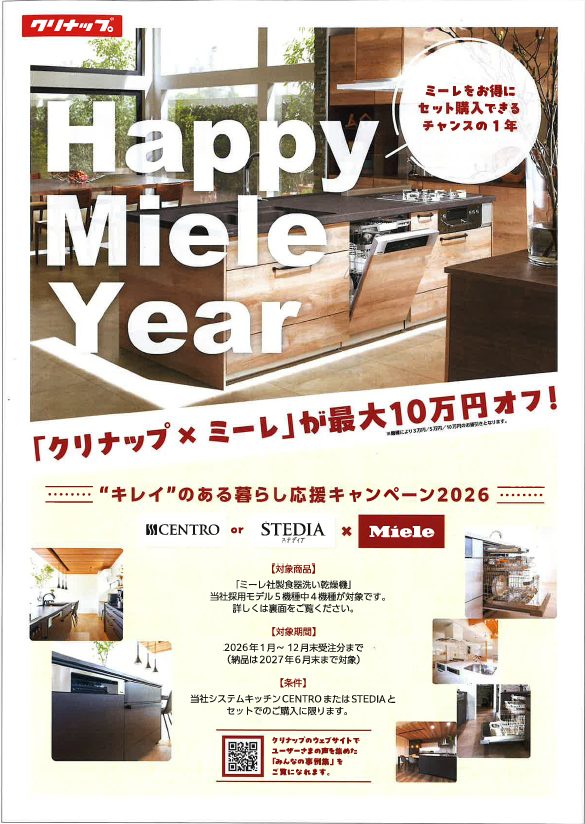 クリナップからは なんと ! ミーレがキャンペーンでお得 最高10万円もお安くなります(^_-)-☆