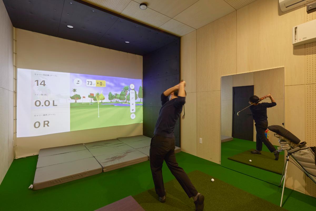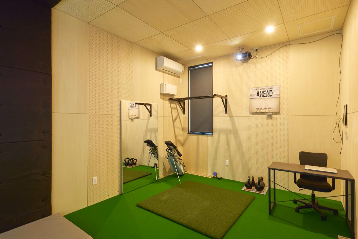 ご主人 球が跳ぶ範囲の壁面は、衝撃を吸収するグラスウールボードで仕上げてもらいました。プロジェクターを付けたので、シミュレーターで映像を映しながら、実際のコースでプレイしているような感覚で練習できるところも気に入っています。