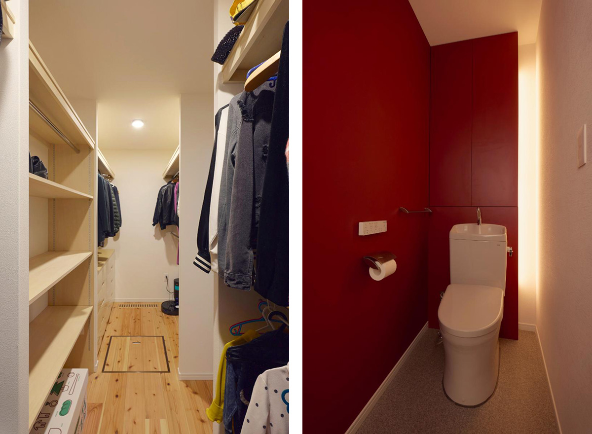 写真左/洗面所・脱衣所だけでなく玄関からも近いファミリークローゼットは、お出かけ前も便利。